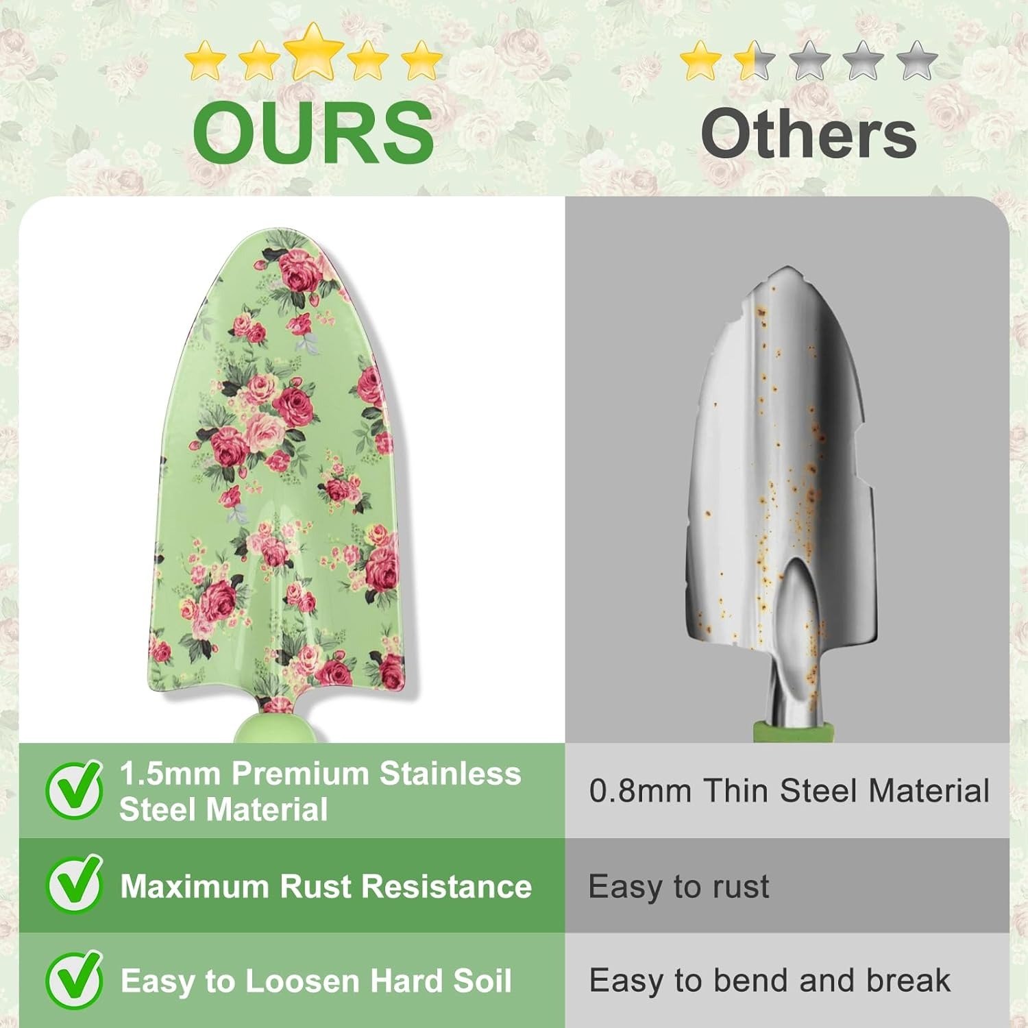 Durable & Rust-Proof Tools: Crafted with high-hardness stainless steel, each tool is built to withstand tough gardening tasks without bending or breaking. Garden tools are rust-resistant, sharp, and tough, ensuring they last through many seasons of gardening.